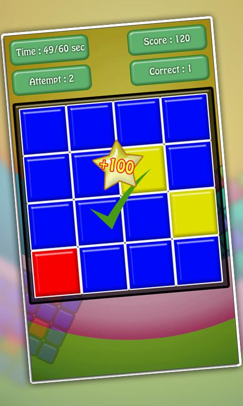 Если вы нажмете на морганную ячейку, вы получите +10 баллов. Это игра плитки и память, чтобы создать мощность и