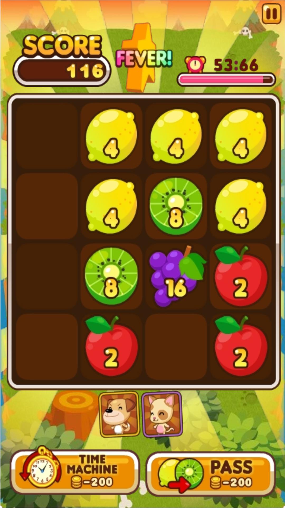 Двигайтесь вверх, вниз, влево и справа к плоду фрукта можно объединить, чтобы создать ту же форму фрукта, что является следующим шагом вверх! Могу я придумать, какие фрукты?