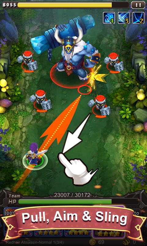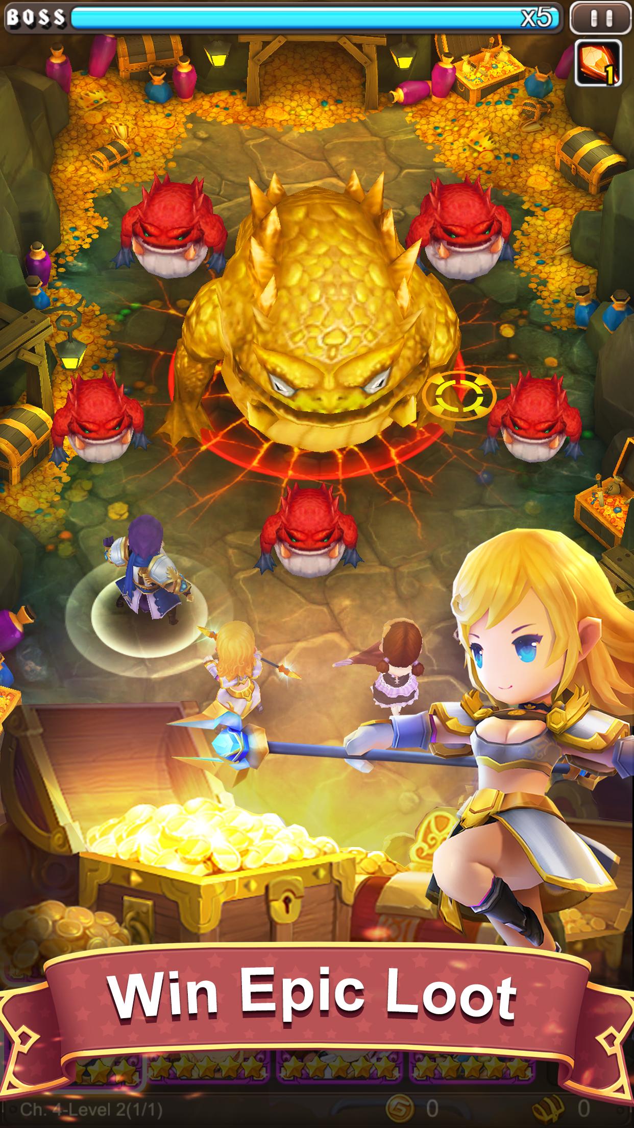 Нажмите, проведите и пройдите, чтобы отправить своих героев, разбивающихся в сторону врагов, изгнать взрывные навыки на воздействие и разграбить потрясающие сокровища!