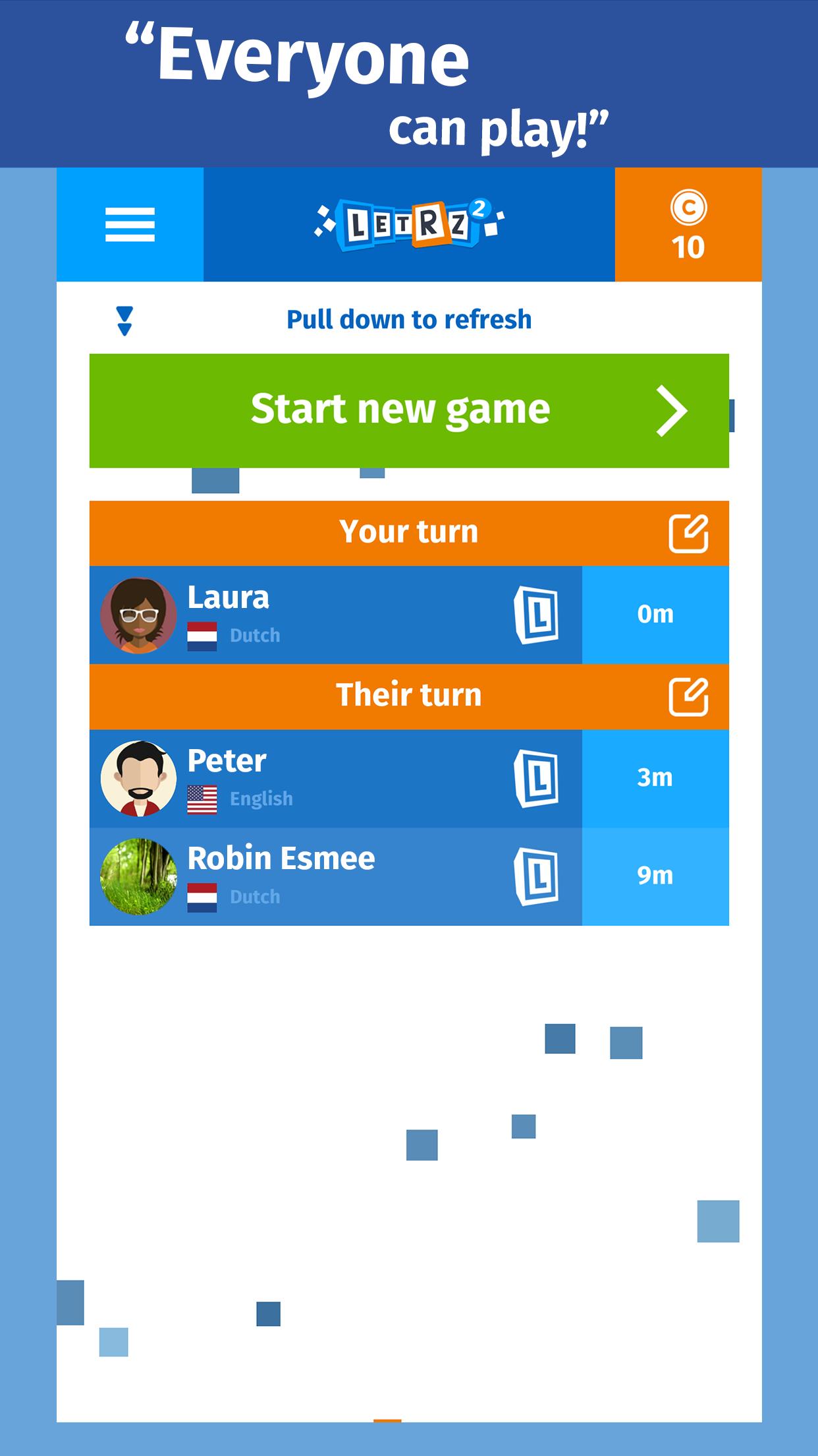 LETRZ 2 - захватывающая игра слов! За раунд вы получаете время на 2 минуты, чтобы сыграть как можно больше слов с двумя заранее определенными буквами. 2 буквы не могут измениться по порядку, но вы можете разместить буквы впереди, между и/или после них.