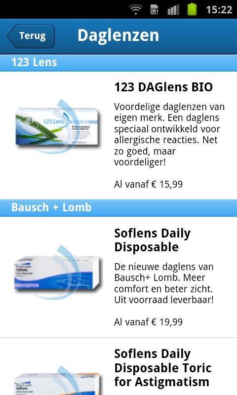 นี่คือแอพใหม่ของ 123 Lens ! ร้านค้าออนไลน์สำหรับการสั่งซื้อเลนส์และอุปกรณ์เสริมของคุณ เลนส์เต็มรูปแบบของเหลวและแว่นตาแสดงในแอพ นอกจากนี้ยังเป็นไปได้ที่จะสั่งซื้อผลิตภัณฑ์ผ่านเว็บไซต์