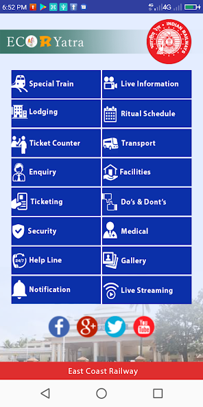 แอพนี้มาจากทางรถไฟ East Coast สำหรับผู้แสวงบุญในโอกาสเทศกาลรถยนต์ (Rath Yatra) ใน Puri, Odisha ผู้คนสามารถรับข้อมูลเกี่ยวกับสิ่งอำนวยความสะดวกที่ได้รับจากชายฝั่งตะวันออกและอื่น ๆ ได้อย่างง่ายดาย