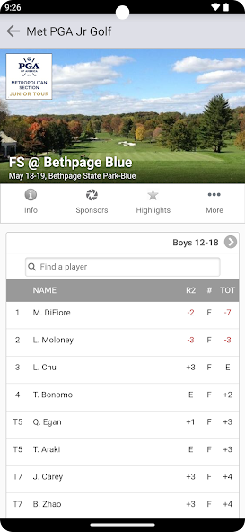 แอพกอล์ฟ PGA Junior Metropolitan สำหรับ Android