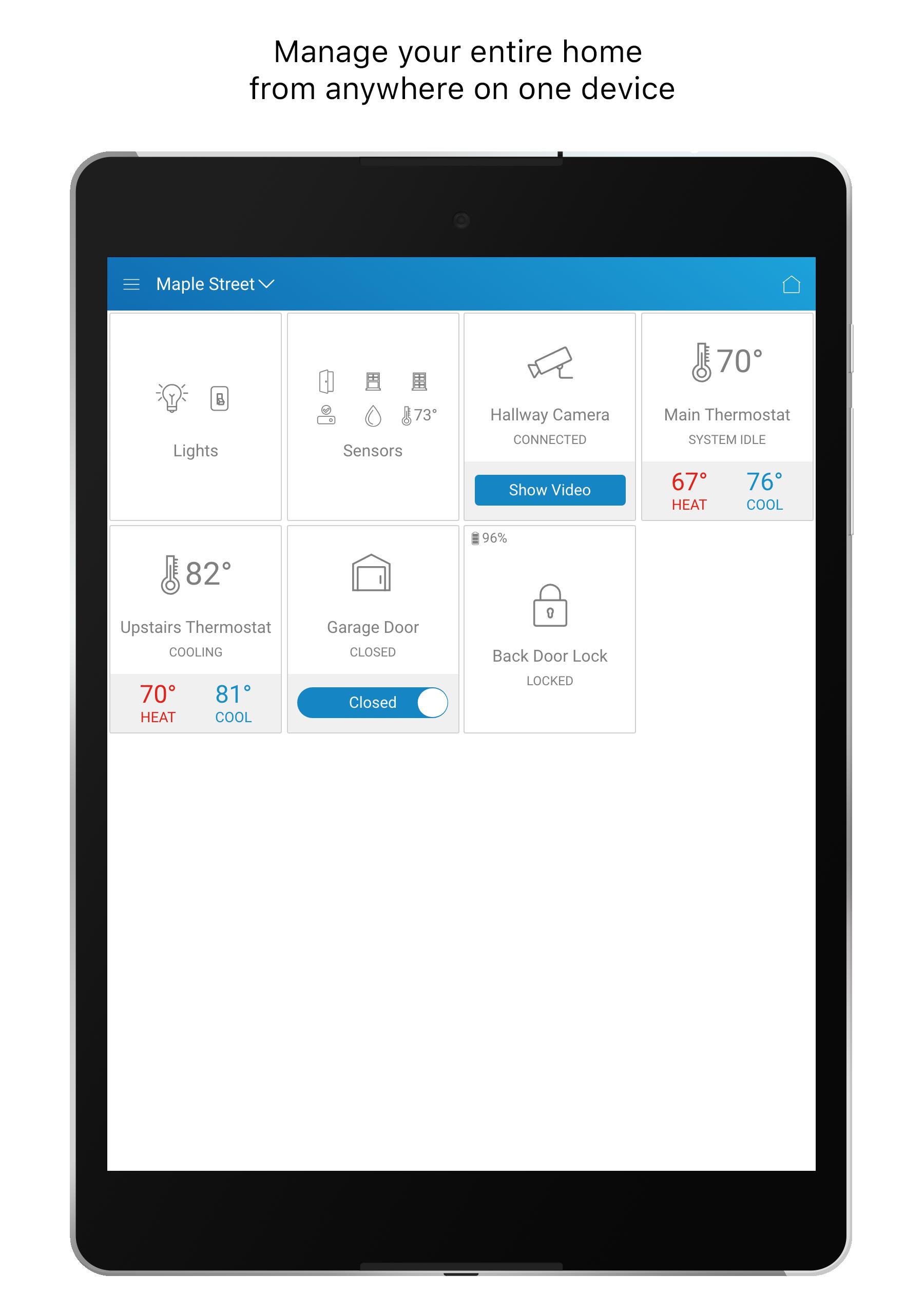 - การควบคุมปุ่มกดหน้าแรกของ Schlage และอุปกรณ์ Z-Wave อื่น ๆ ที่รองรับด้วยอินเทอร์เฟซที่ใช้งานง่าย
