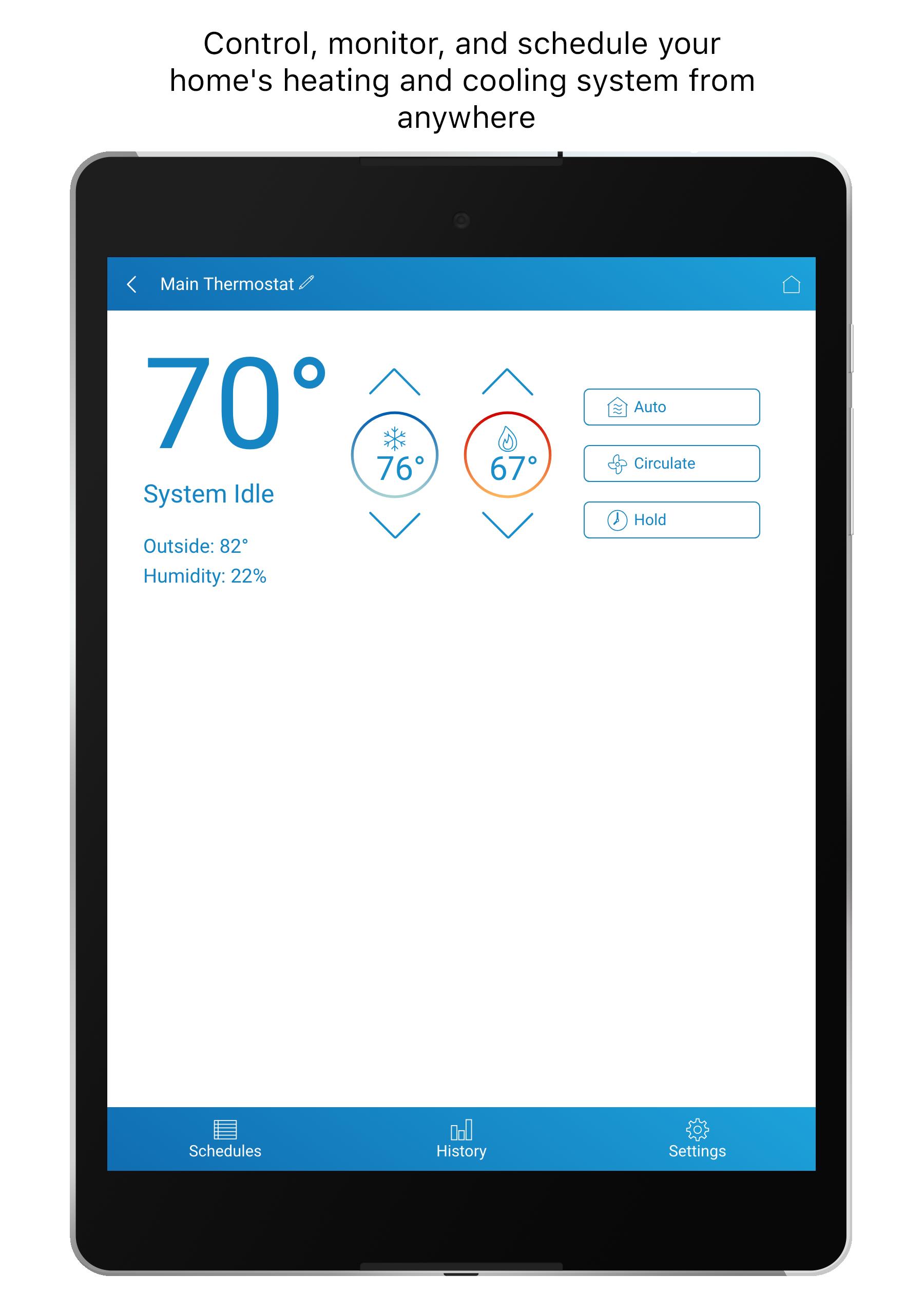 - ควบคุมตรวจสอบและกำหนดเวลาระบบทำความร้อนและความเย็นของบ้านของคุณจากทุกที่