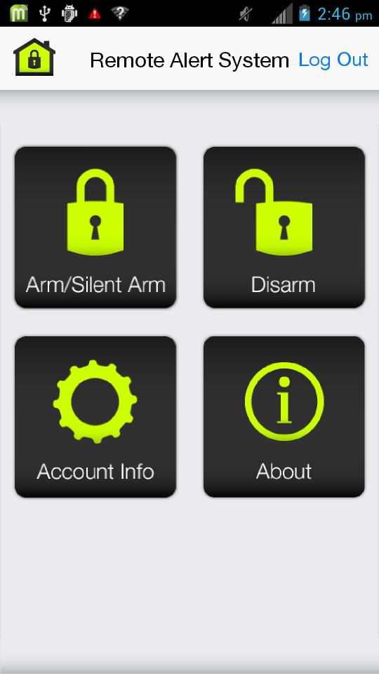 ระบบการแจ้งเตือนระยะไกลของคุณสามารถติดอาวุธหรือปลดอาวุธจากสมาร์ทโฟนของคุณโดยใช้แอปพลิเคชันมือถือ Straight Talk Remote Alert ฟรีสำหรับ Android