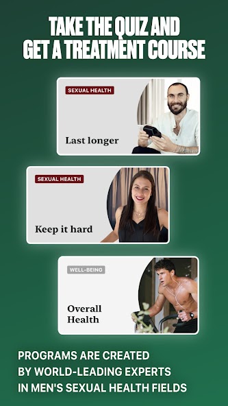 เลือกโปรแกรมที่เหมาะสมและเริ่มออกกำลังกาย แต่ละโปรแกรมจะทุ่มเทให้กับหัวข้อที่แตกต่างกันเช่นความแข็งแกร่งเพิ่มขึ้นผู้ฝึกสอน Kegel หรือการออกกำลังกายหายใจ ด้วยการผ่านการออกกำลังกายของ Kegel For Men แต่ละครั้งสุขภาพทางเพศของคุณจะแข็งแกร่งขึ้นและแข็งแกร่งขึ้น