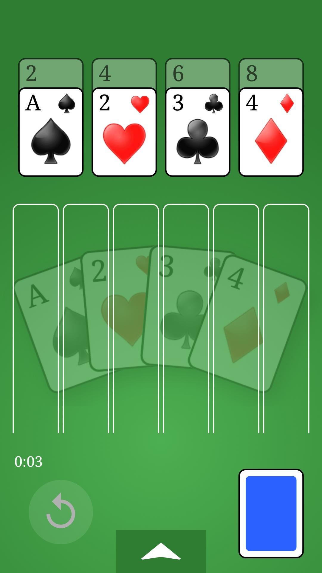 เกมเริ่มต้นด้วย 4 สแต็คที่สูงกว่าด้วยการ์ด: A, 2, 3 และ 4