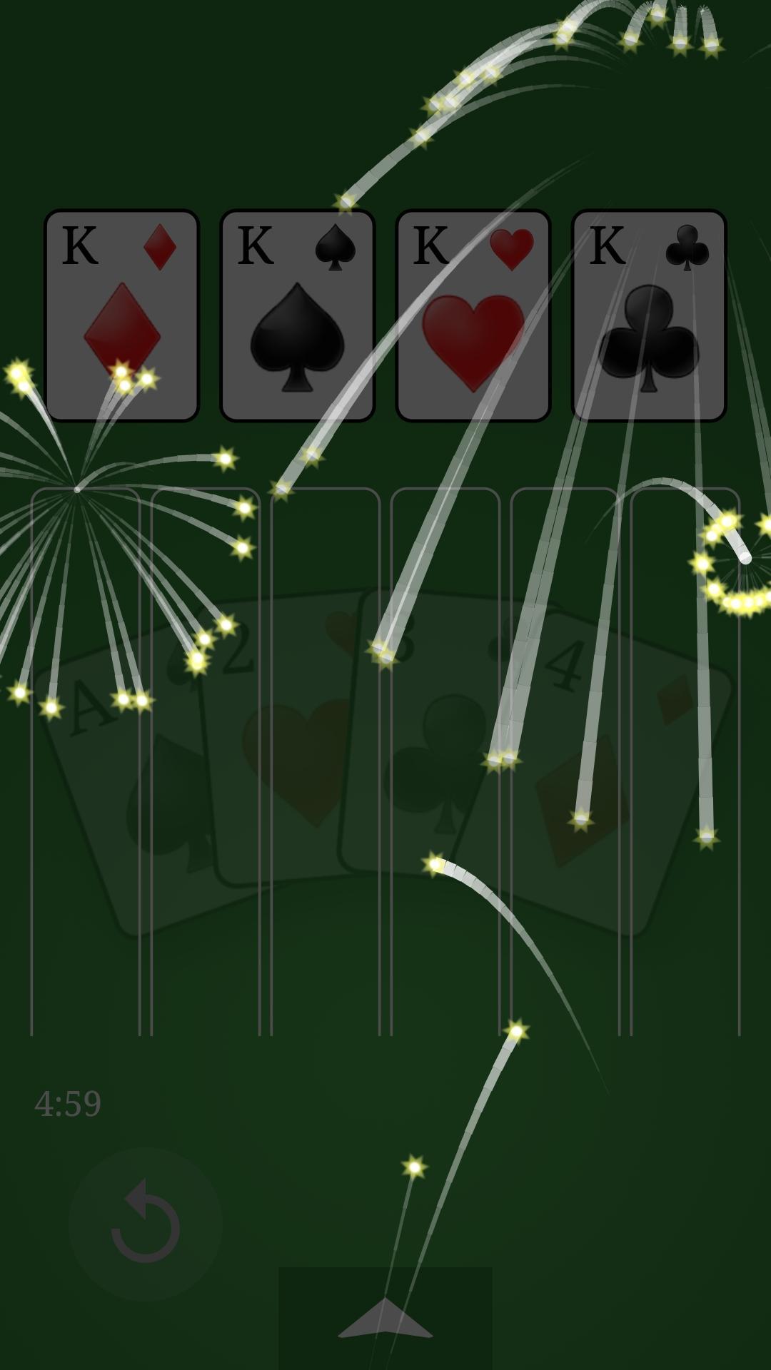 ในตอนท้ายของเกม A และ 5 จะเลื่อนขึ้นในสแต็คที่สี่, J, Q และ K จะเพิ่มขึ้นในสแต็คแรกและ 9 และ K จะปีนขึ้นไปสแต็คที่สี่
