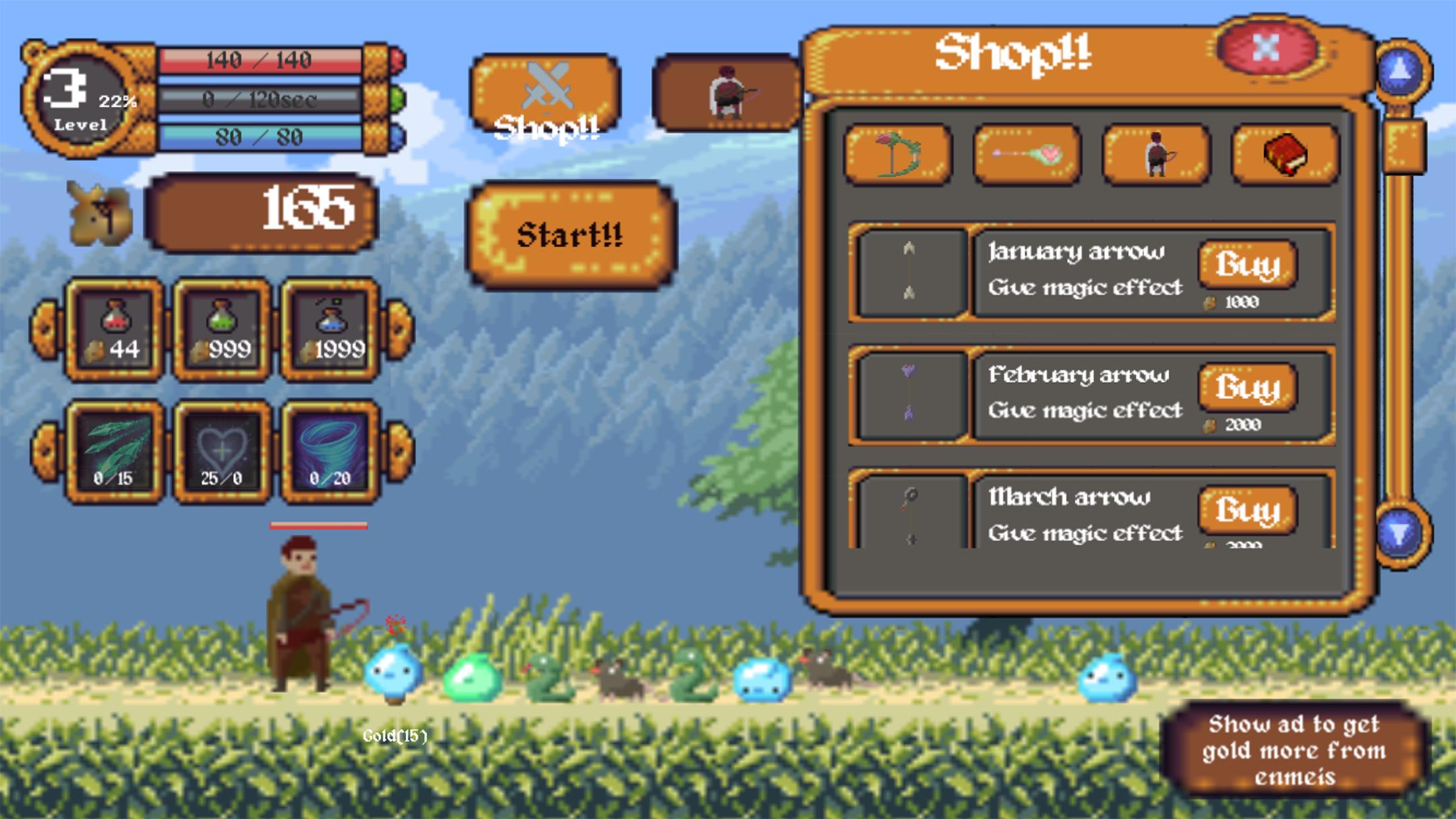 2. มีรายการธนูและลูกศรหลายชนิดและผู้เล่นที่เติบโตขึ้นโดยการซื้อ