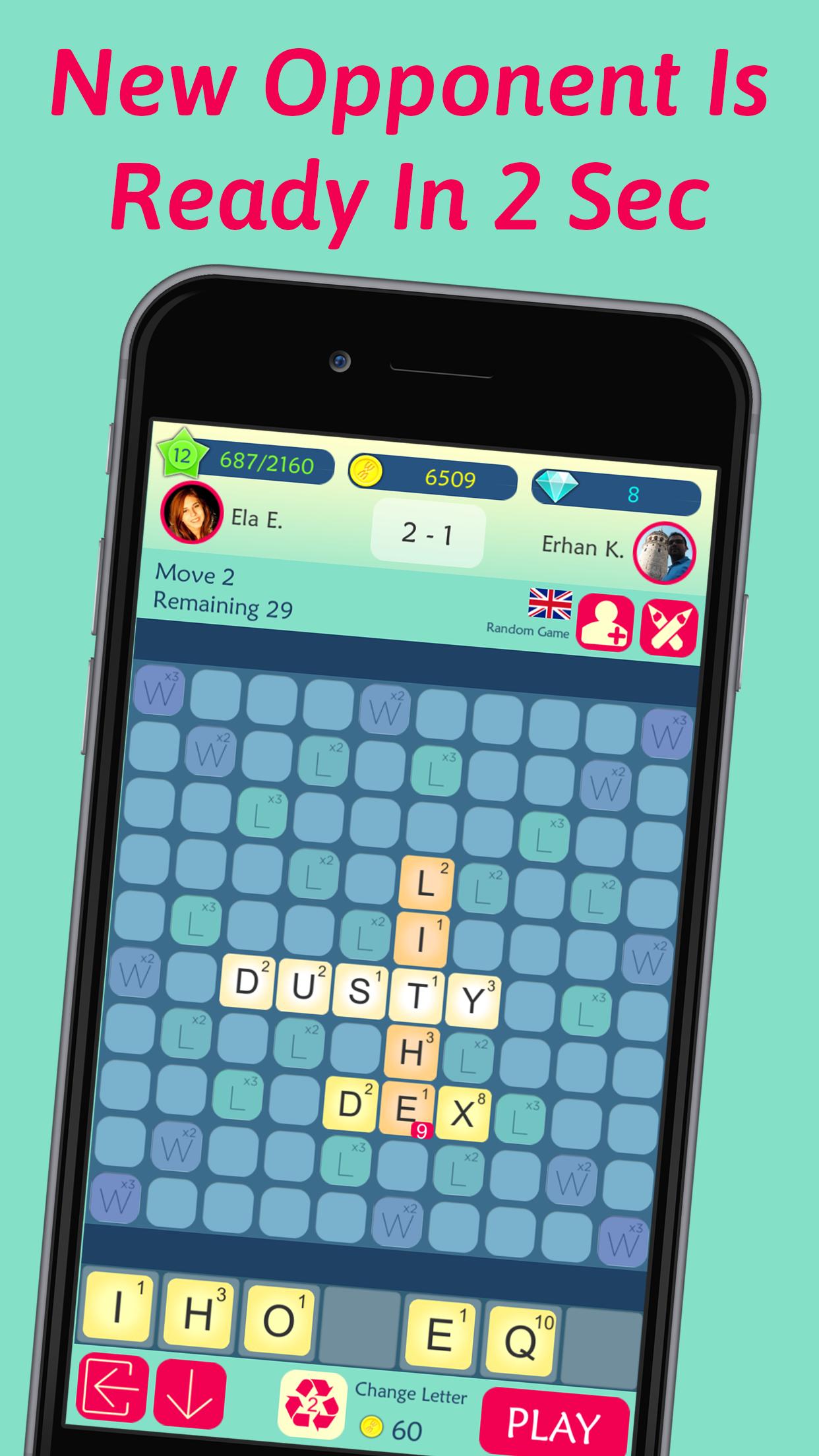 ใน Wordmatic คุณแข่งขันกับคู่ต่อสู้ของคุณในการย้ายเดี่ยวไม่ขึ้นอยู่กับคะแนนบอร์ดทั้งหมด