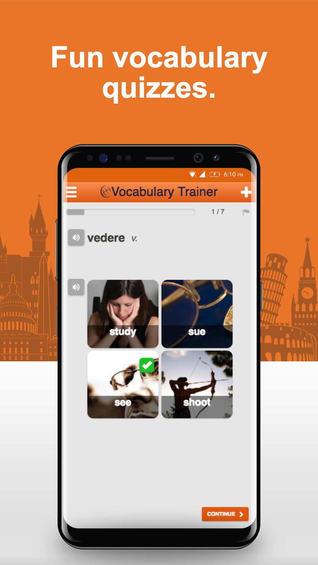 学习意大利语的词汇培训师:学会说意大利旅行,商务,约会,学习和学校。