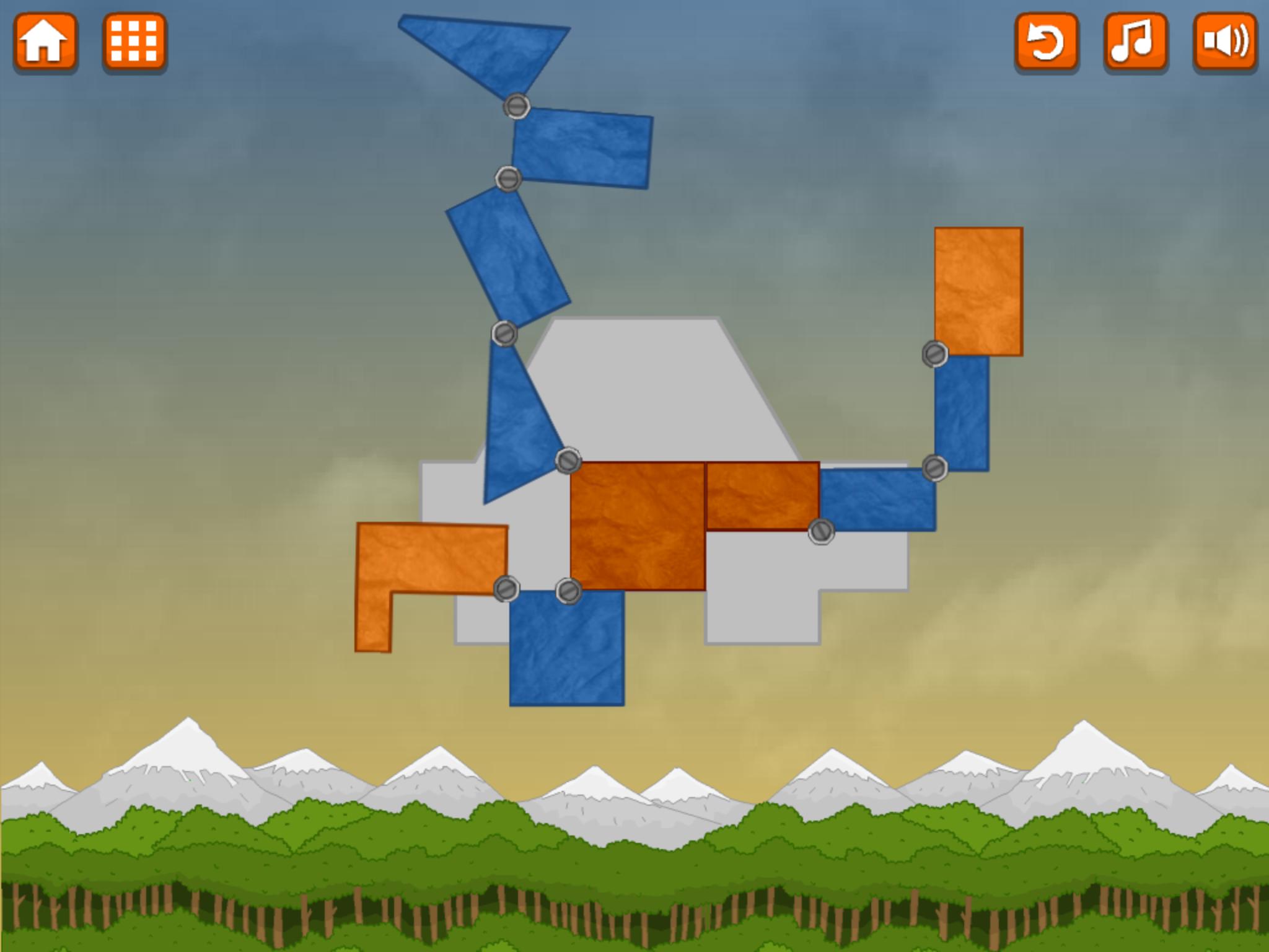 Tangram型拼图游戏,要求您安排一组件以形成指定形状。考虑到这些碎片是通过铰链相互连接的,这并不容易。比其他碎片稍暗的一块固定在其位置上。