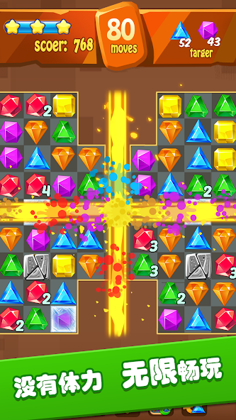 在有趣的游戏玩法中以令人眼花comment乱的组合交换并匹配珠宝,以完成挑战。