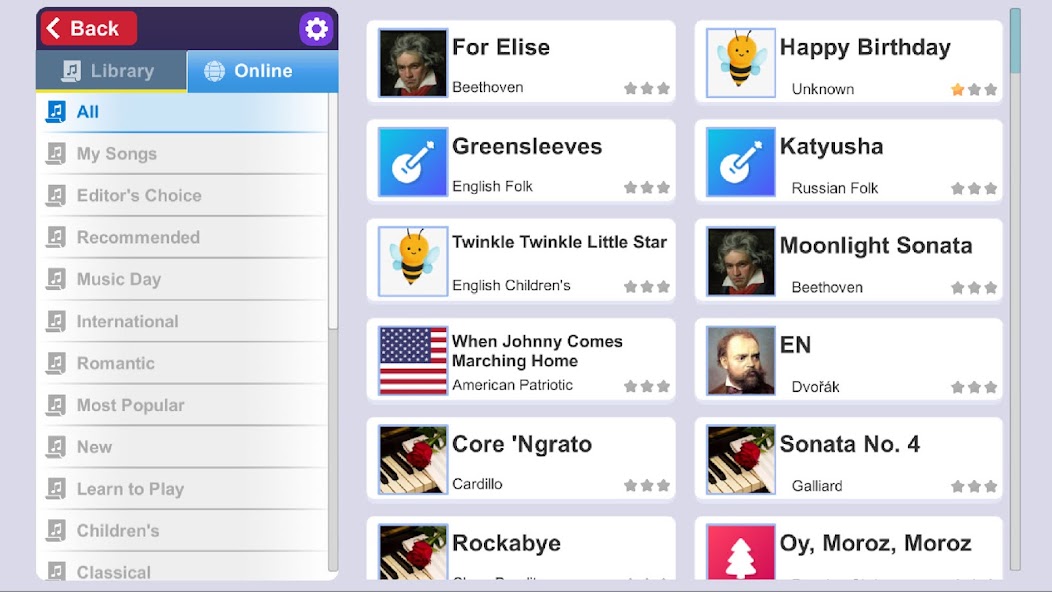 - 尝试128个不同的键盘和仪器,包括大钢琴,器官和大键琴。