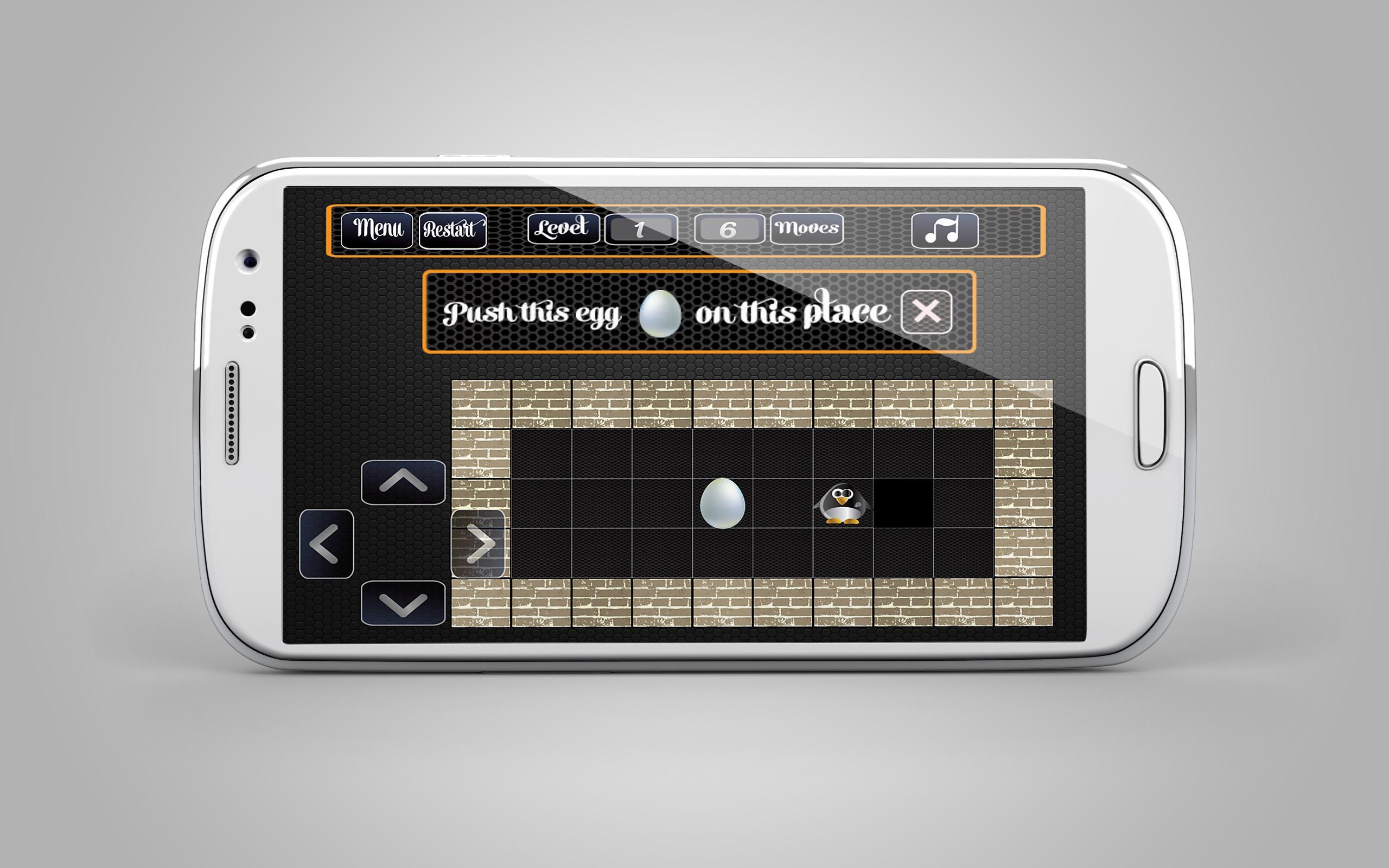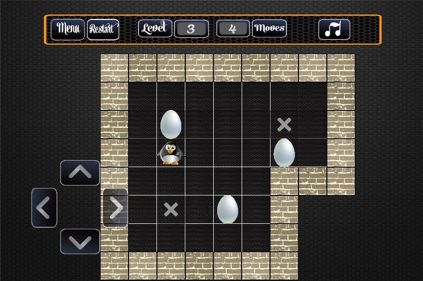 企鹅被困在地牢中。现在,他必须解决一个困难的难题才能离开这里。您必须帮助他移动沉重的鸡蛋并将它们放在特殊平台上。您所做的步骤越少,您获得的观点就越多。