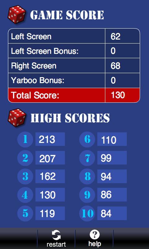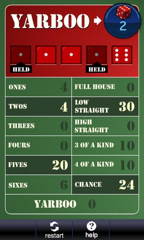 Yarboo是经典扑克骰子游戏的版本。它的设计为快速,设计良好且触摸屏友好。还包括对骰子掷骰,高分表的加速度计支持以及内置的帮助。