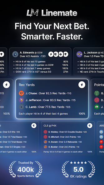 Linemate Inc. is not affiliated with or endorsed by Apple, Inc., the NFL, NCAAF, MLB, NBA, WNBA, NHL, Bundesliga, EPL, LaLiga, Ligue 1, Serie A, Brasileiro Série A, MLS, Euro, nor is it a gambling site, and does not accept or place wagers of any type.