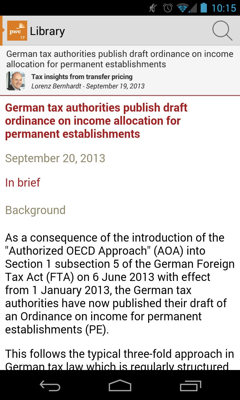 轉移定價要去( TP to Go )是一種移動應用程序,旨在使您想到PWC轉移定價網絡的領導文章。我們包含了許多出版物的內容,包括:轉移定價,轉讓定價觀點,全球轉讓定價出版物以及我們全球協調文件(GCD)團隊的國家頁面和國家要求的稅收見解。我們希望您找到TP to Go中提供的信息,以便在我們全球網絡周圍添加新內容時有用。