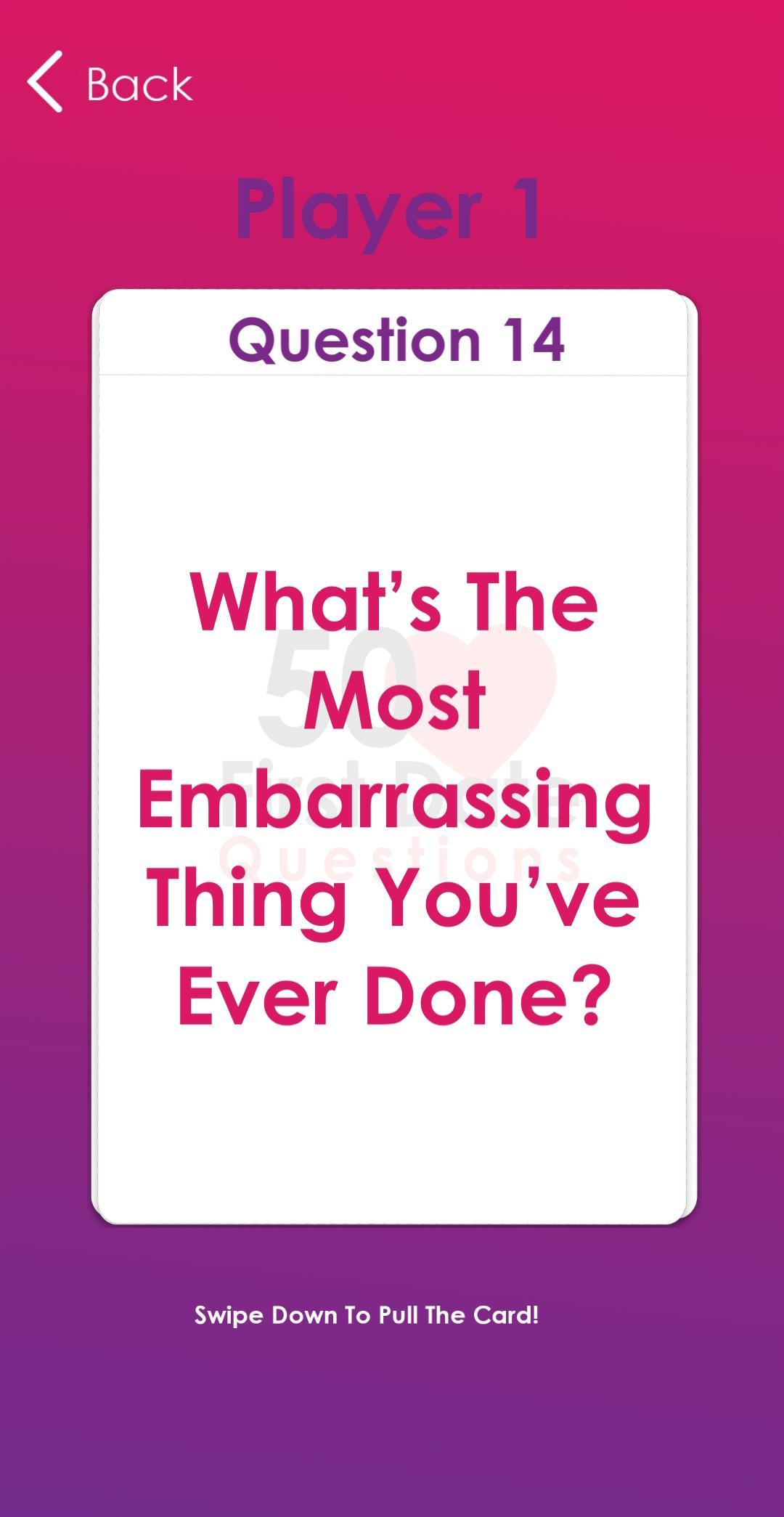 50 First Date Questions在這裡!您是否曾經因為緊張而在第一次約會開始對話時遇到了麻煩? 50 First Date Questions使它變得輕鬆,使其成為一個有趣的遊戲,同時真正了解人及其個性。找出使它們有趣的原因,找出您的共同點,並找出它們的樂趣。