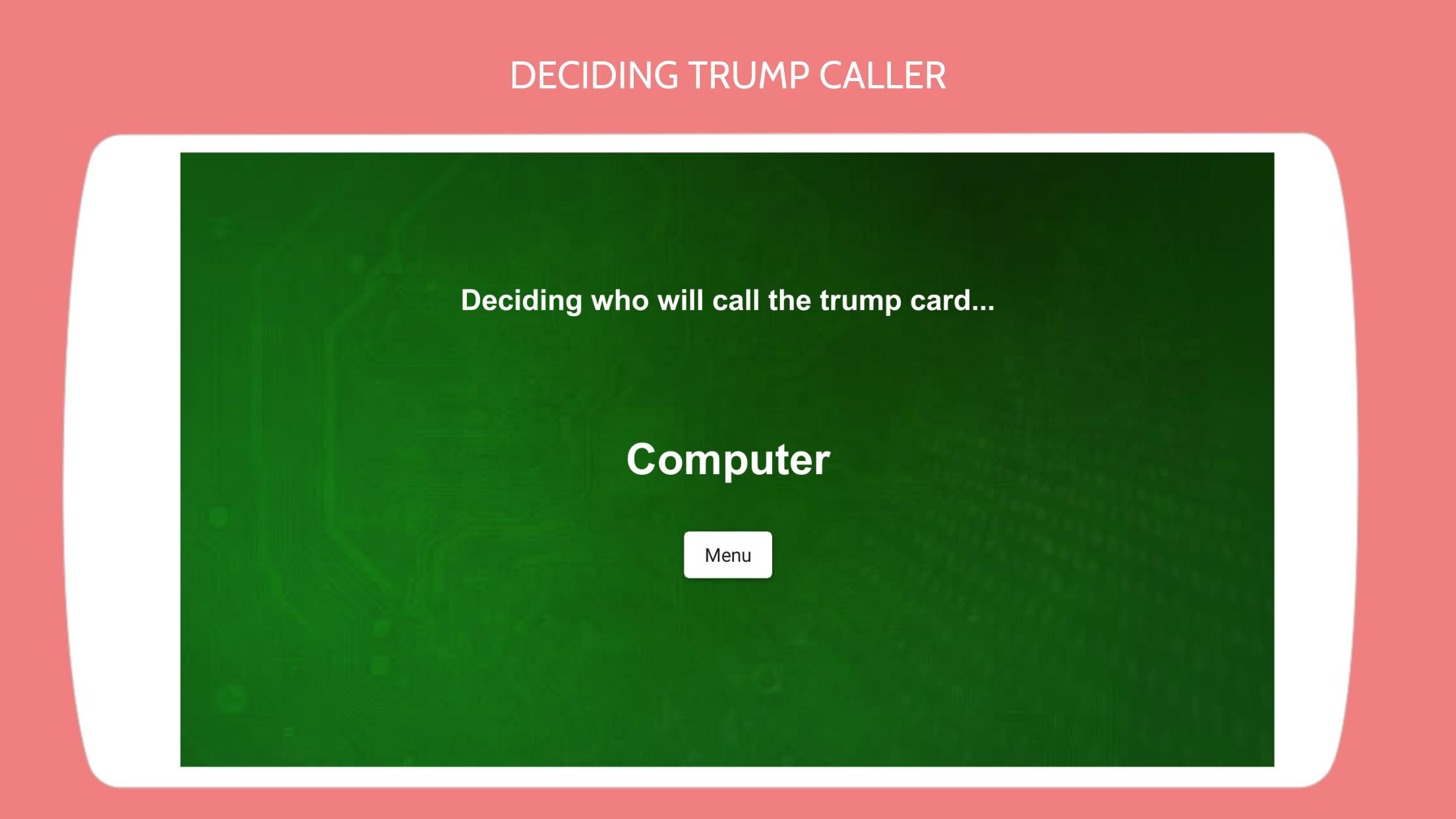 通過選項使玩家可以隨機打開五套卡中的兩個。如果兩張卡都屬於同一套房,則將其宣佈為特朗普套房。否則,選擇具有較高排名的卡的套件被選為特朗普套房。如果這兩張卡都有相同的等級,並且屬於兩個不同的套房,則選擇特朗普套房的選擇是給用戶的。