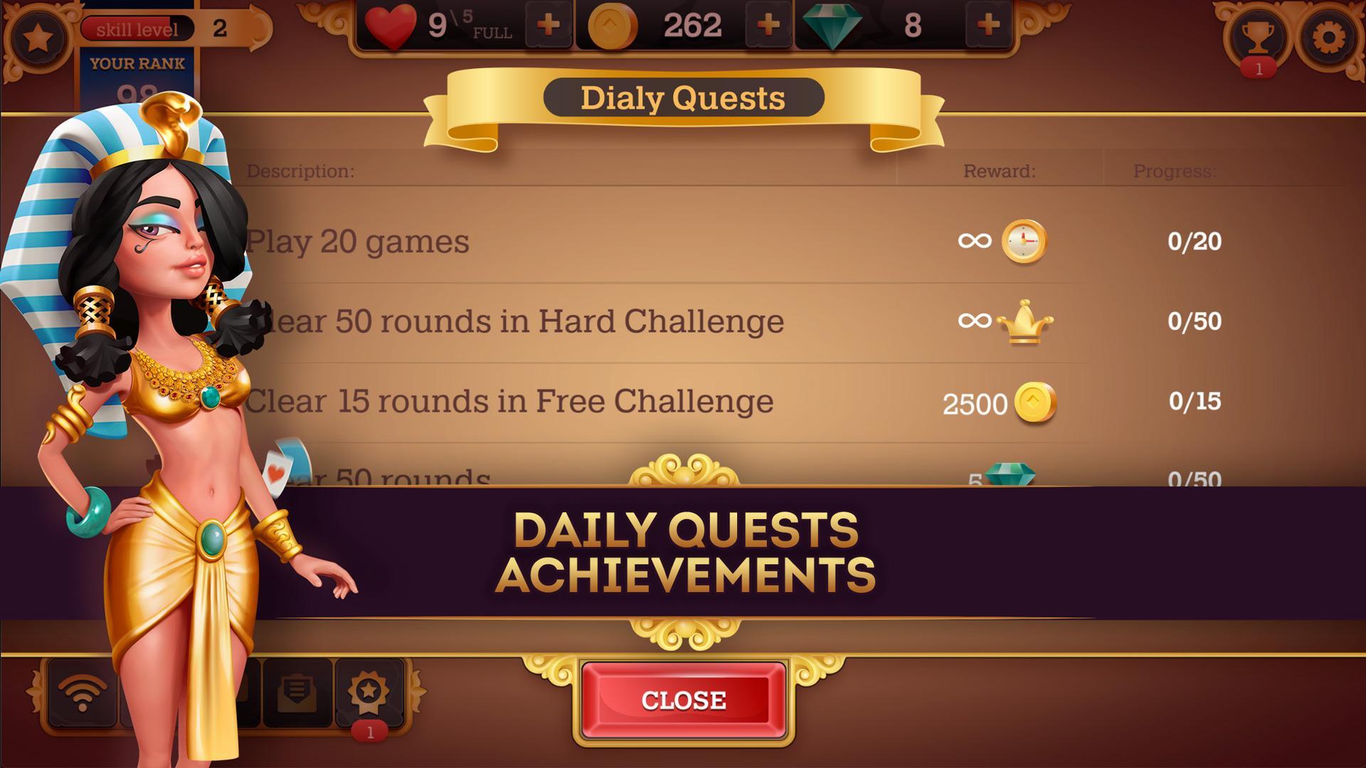 立即下載,沉浸在Cleopatra Solitaire TriPeaks的世界中,無盡的冒險等待著 - 全部免費!
