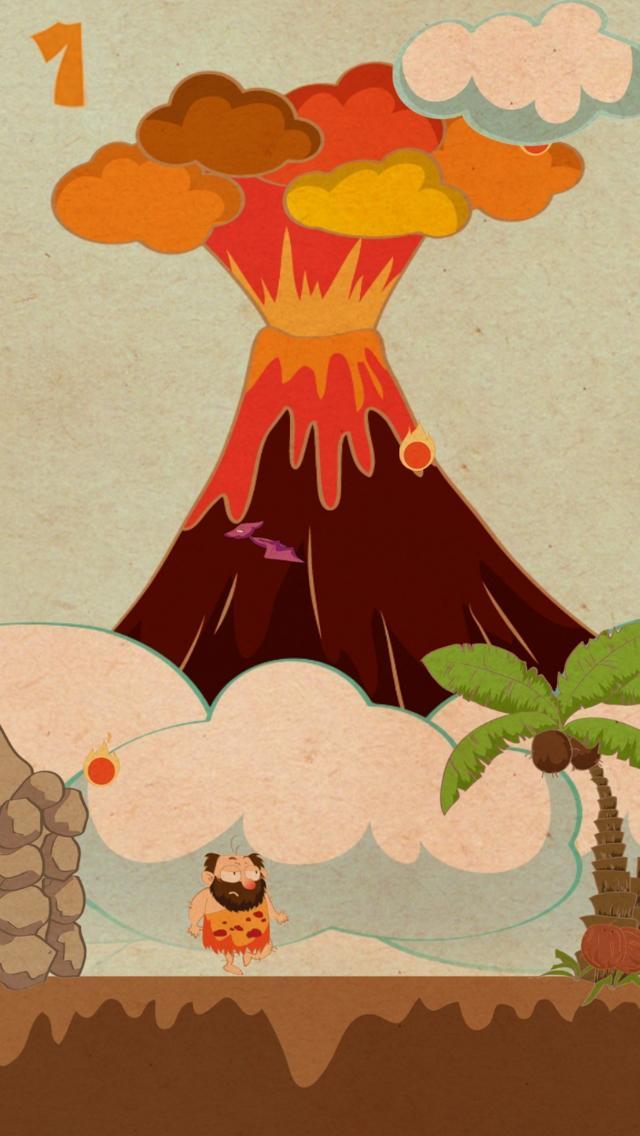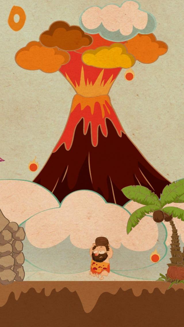 有一天,火山醒了!小男孩和女孩餓了!我們可憐的穴居人,可可先生必須用完才能為他的孩子們收穫他最喜歡的食物!