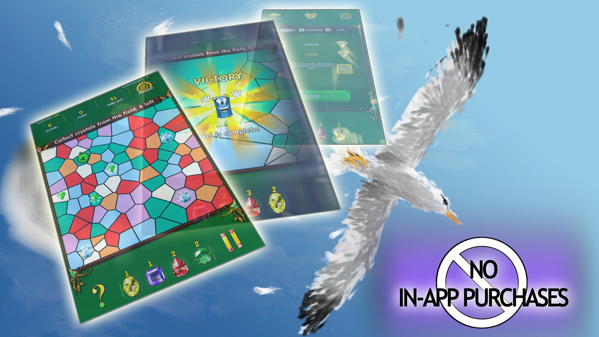 在此版本的遊戲中,沒有遊戲中的購買,可以通過查看廣告來恢復生活。我們還提供具有無限壽命的遊戲版本-https://play.google.com/store/apps/details?id=com.quantgames.colorstones