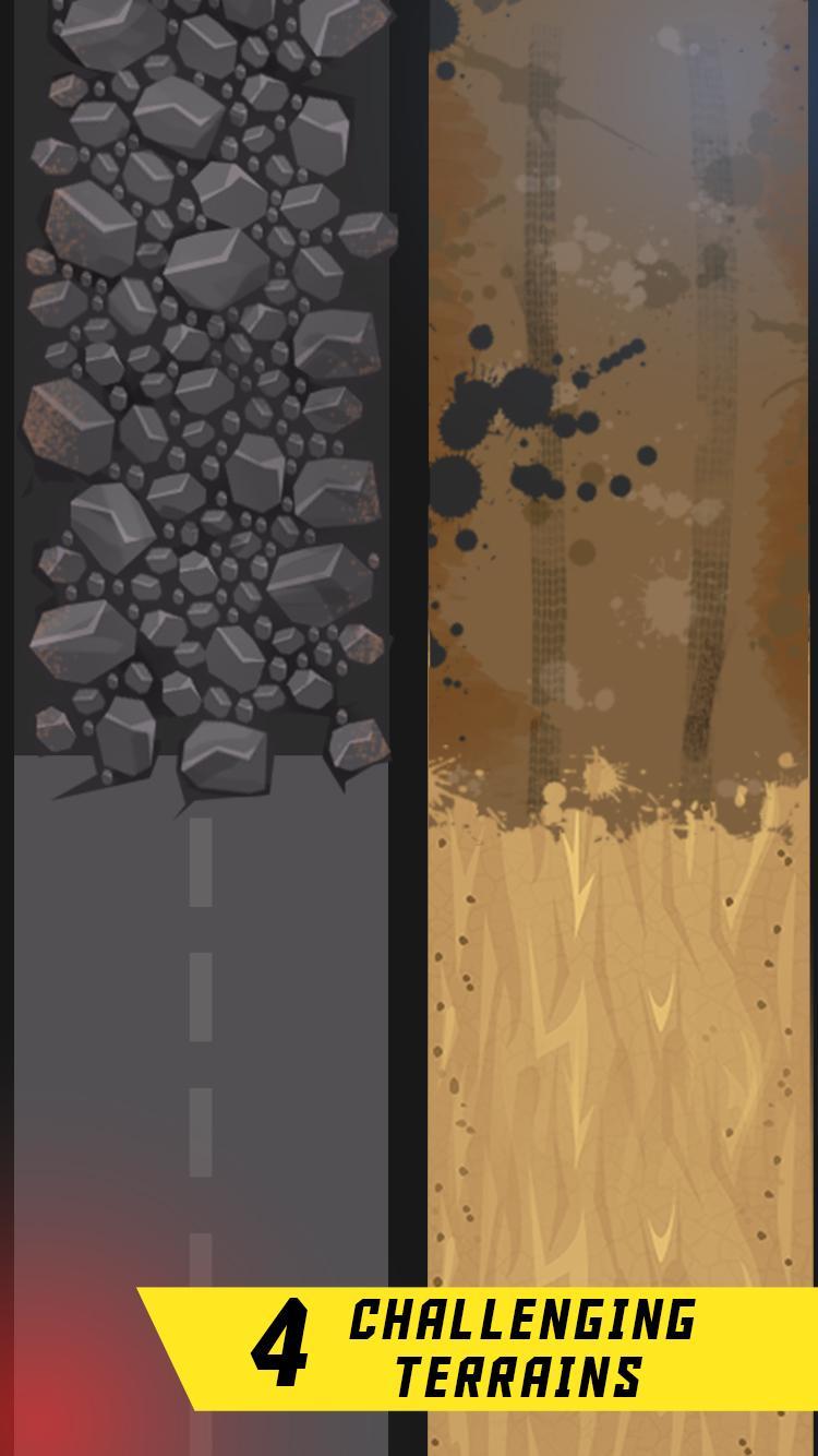 一旦開始追逐,您將經歷在不同的地形上騎行。每種類型的地形都需要不同類型的輪胎。通過挖掘和保持輪胎以保持速度,立即在輪胎之間切換。繼續做出正確的切換,讓這個最終的追逐讓您興奮。