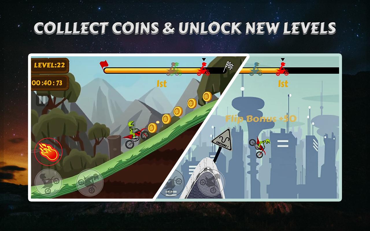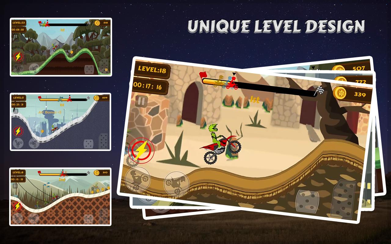不同的階段和水平會給您帶來不同的樂趣和激動人心的味道!請記住,您的自行車車輪上有出色的物理學。如果您不適當尊重物理學,這可能會使您崩潰。