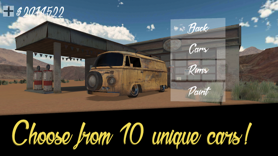 每台具有獨特的真實汽車的經典歌曲聽起來都是V8和V12的混合物,但是首先,您以4個敲門聲開始,只是為了獲得它的感覺並學會漂移。將來的更新中有更多的汽車來了。