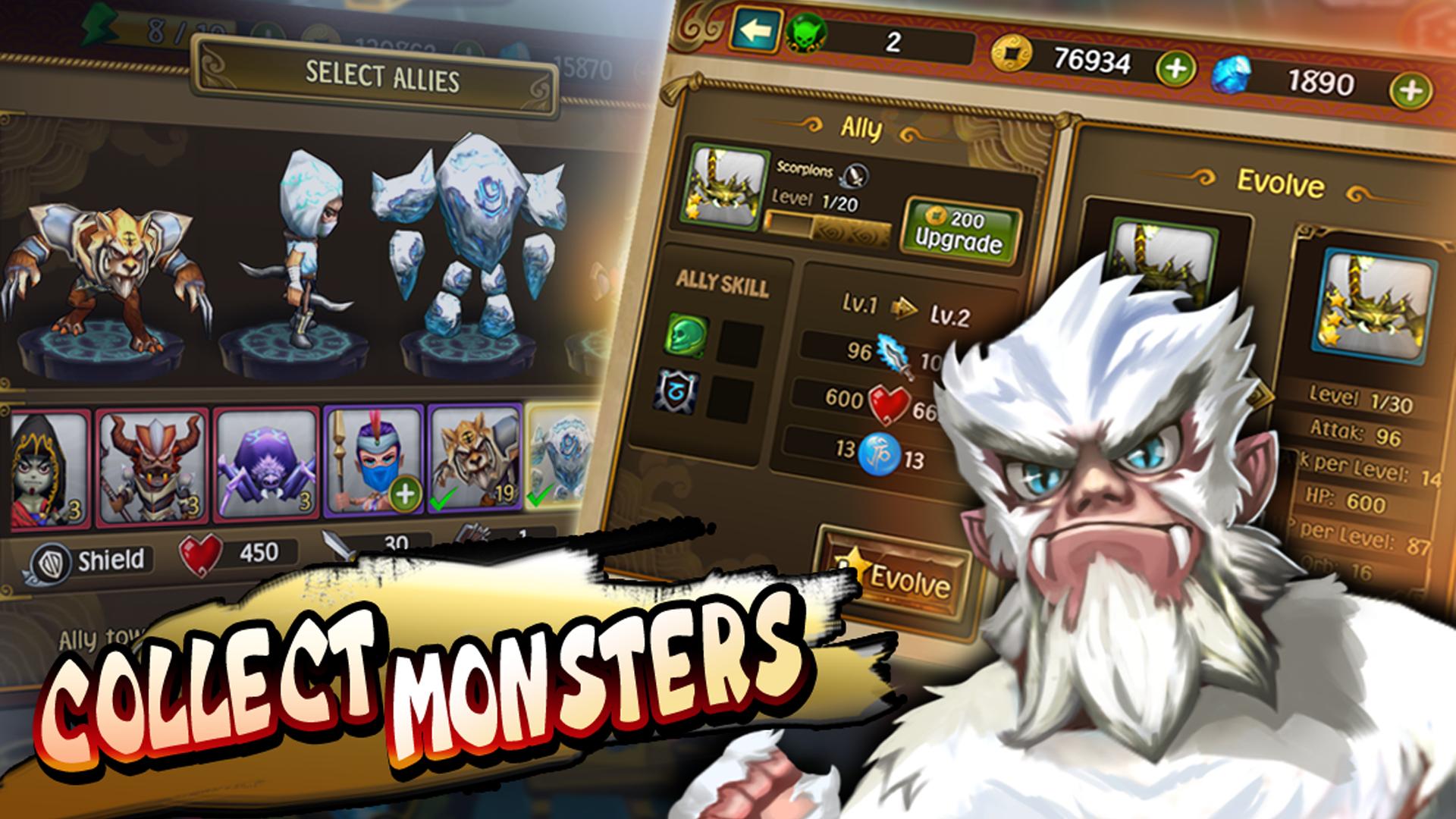 在史詩般的戰鬥中捍衛您的精神大師,進化自由漫遊的英雄,並在您穿越神話中的中國時將怪物變成盟友!