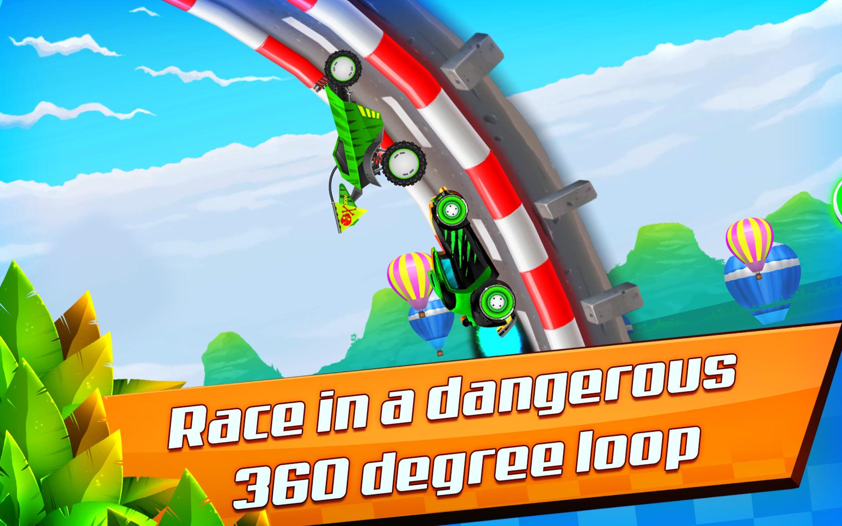 單擊按鈕,並儘可能快地開車。單擊魔術提升按鈕,打開渦輪功率速度。沿著裝滿實際尺寸物體的賽車賽道騎,跳過山丘和懸崖,然後將無線電控制車推入幾個360度循環!