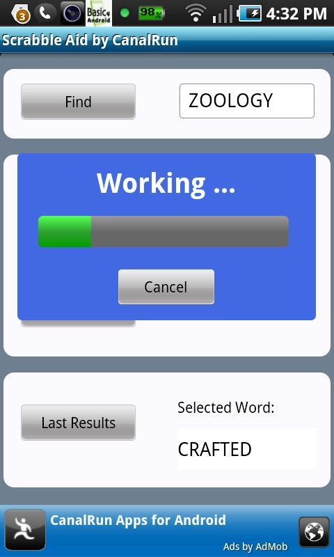 該應用具有非常簡單和直觀的界面。它甚至允許您取消其Anagram搜索功能,這可能需要一兩分鐘。